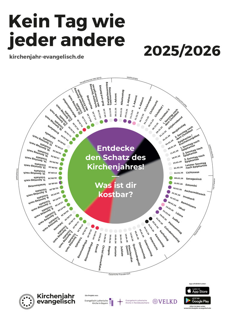 Am Rand des Kirchenjahreskreises sind die Kostbarkeiten (ggf. in mehrfacher Ausfertigung) verteilt. Jede*r ist eingeladen, nach einem Begriff, einer Kostbarkeit zu suchen, die sie oder ihn anspricht. Wer ein Kärtchen ausgewählt hat, findet auf der Rückseite den dazu gehörenden Sonn- oder Feiertag und einen ergänzenden Satz. Der Blick in den Kirchenjahreskreis zeigt, wann dieser Tag das nächste Mal gefeiert wird; alternativ lässt sich der nächste Termin auch durch Scannen des QR-Codes herausfinden. Wer mag, trägt sich das Datum ein – und erinnert sich an diesem Tag an sein Kärtchen und die damit verbundenen Gedanken.